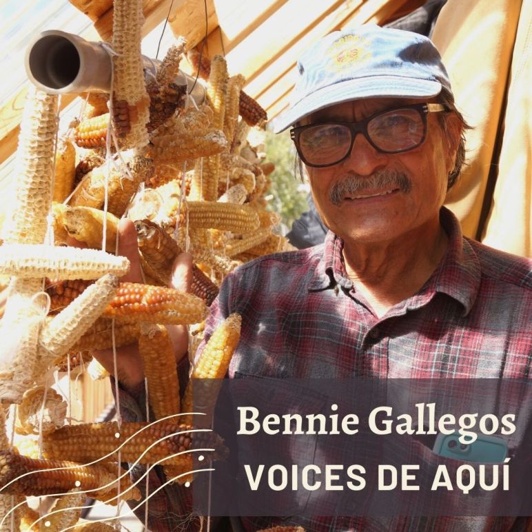 To kick off the “Voices de Aquí” series, we join Bennie Gallegos on his family farm in Questa, where he describes the cultivation of corn and processing of chicos.